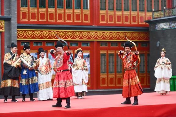 7月13日,2024明文化论坛在位于北京市昌平区的全球明文化交流中心开幕,开幕当天还举行了明代皇家仪仗迎宾礼和大射礼展演。