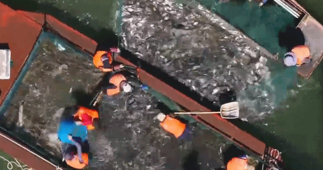 清晨,渔船迎着朝霞,驶向乌伦古湖的深处,在湖中心,渔民开始捕捞作业,选点、下网之后,就开始收网,随着渔网越收越紧,一条条新鲜的鱼,被拉出翻滚的水面。