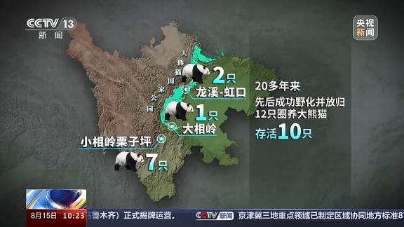 而在全国,我国已形成小相岭栗子坪、龙溪-虹口、大相岭共三个大熊猫野化放归地。20多年来,先后成功野化并放归12只圈养大熊猫,其中存活10只。大熊猫的成功野化放归,促进了小相岭和岷山南端的两个大熊猫小种群复壮。