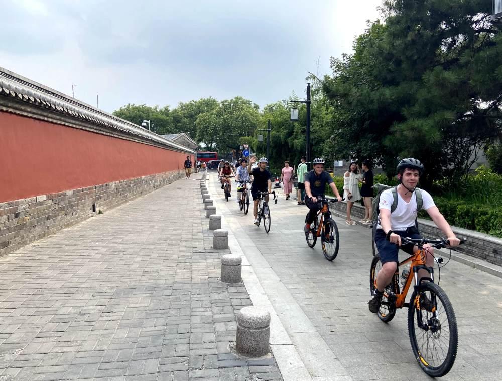 7月24日,参与北京大学国际暑期学校课程的中外大学生在北京街头骑行。新华社记者 魏梦佳 摄
