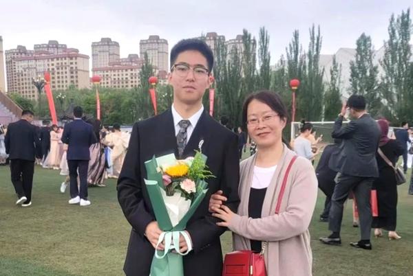 刘傲寒和妈妈合影。北航供图