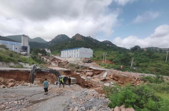 8月21日,辽宁省葫芦岛市,中铁二十局凌绥高速公路4a标项目施工人员在抢修道路。 新华社 图