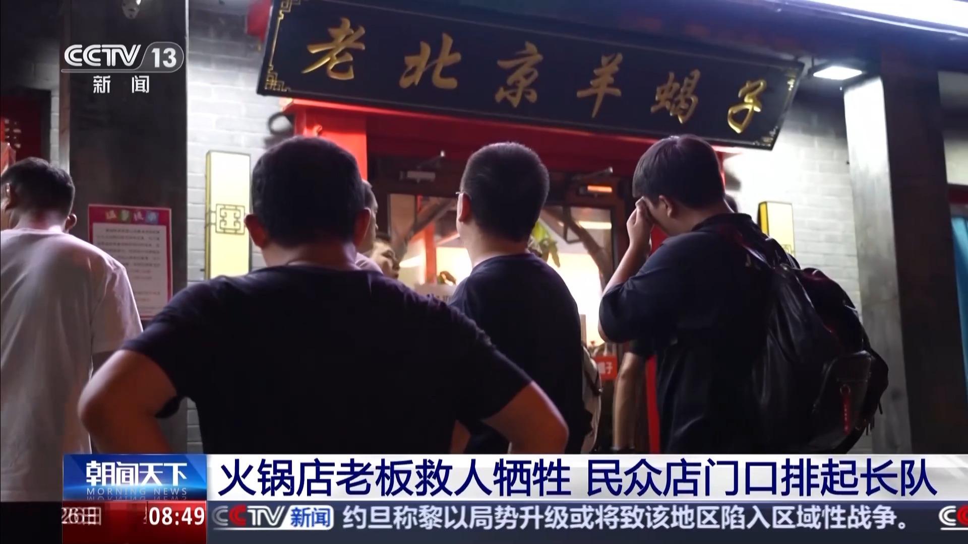 这几天北京市海淀区的一家火锅店突然“火”了,每天顾客络绎不绝,在门前排起长队,有的甚至得等上两三个小时。其实,很多人来这里并不是单纯为了吃饭,而是听说了火锅店老板为救落水儿童牺牲的事迹,大家想以这样的方式向英雄表达敬意。