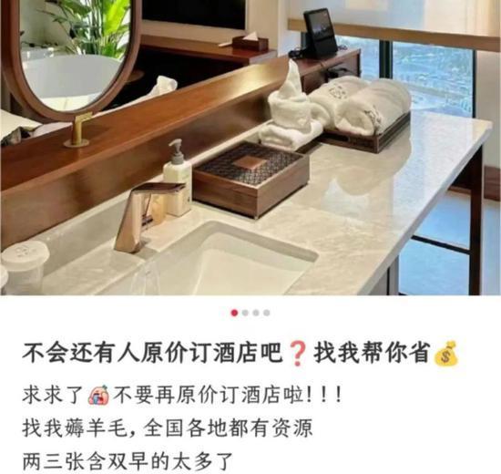 低价酒店代订服务在各大交易平台上屡见不鲜,社交平台上也常常能看到诸如“688住美高梅”“不会还有人原价住酒店吧”的帖子。这些帖子声称可以通过内部价、协议价或积分兑换等方式,为消费者提供低价房源。