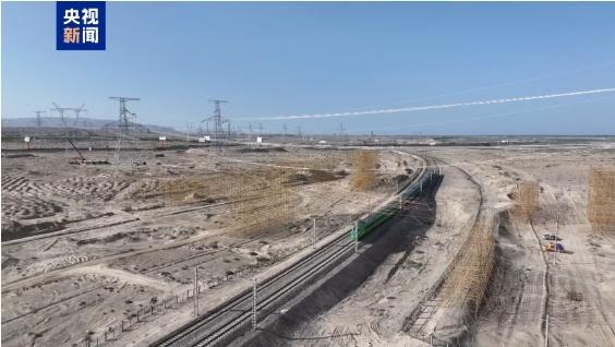 今天上午,在新疆巴州焉耆县,随着最后一根导线横跨环塔克拉玛干沙漠铁路牵引完成,巴州-铁干里克-若羌750千伏超高压输变电工程实现全线贯通。这也是新疆首条跨沙漠铁路的750千伏超高压输变电工程。