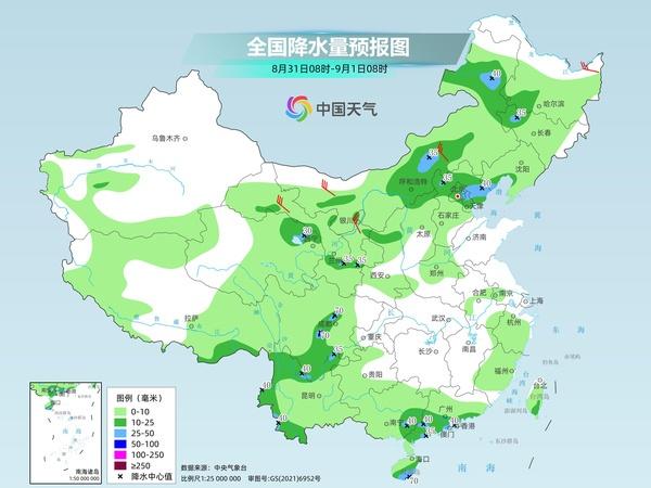 今天,北方主雨区将转移至内蒙古西部及华北等地。9月2日至4日,北方还将有一轮降雨过程,西北地区东部、内蒙古、华北北部、东北等地自西向东还将先后有小到中雨或阵雨过程,局地有大雨或暴雨。