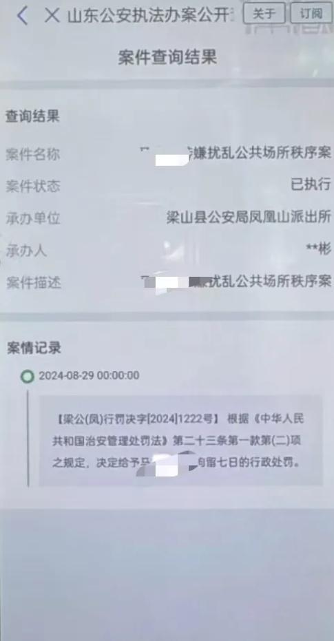 根据男方家属及知情人士提供的相关书证显示:女方认为自己被寻衅滋事,向警方报案。而男方的母亲则因为涉嫌扰乱公共场所秩序,于8月29日被处行政拘留7日。