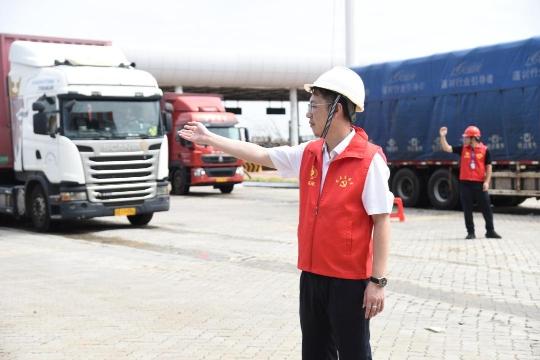 但由于受台风影响,现场仍有大量货车等候待渡,正在组织应急疏运。