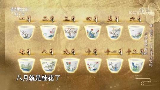 瞧↓清代康熙青花五彩十二花神诗文杯上,桂花与诗句被巧妙融入杯子设计之中,“中秋限定款”应运而生。