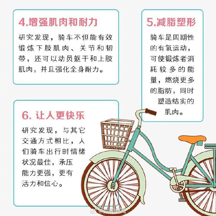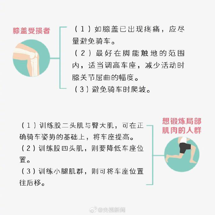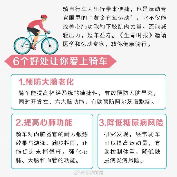 今天(9月17日)是世界骑行日。骑行被称为“黄金有氧运动”,既能锻炼身体,还能减压。骑车时,车座调多高才合适?什么样的姿势不伤膝盖?骑行时间越长,锻炼效果越好吗?不同人群骑车锻炼都要注意什么?分享给爱好骑行的TA!秋高气爽,一起出发吧~