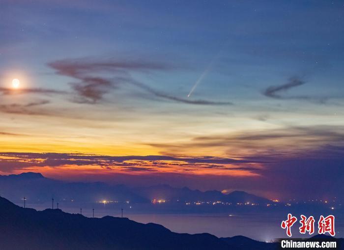 中新网广州10月9日电 据广州市五羊天象馆9日预测,今年10月12日,C/2023A3(紫金山-阿特拉斯)彗星距离地球最近,近地点为0.47个天文单位,距离地球约7000万千米。在日落后西方稍偏南的低空,中国可再次观赏和拍摄到这颗迷人彗星的光彩。