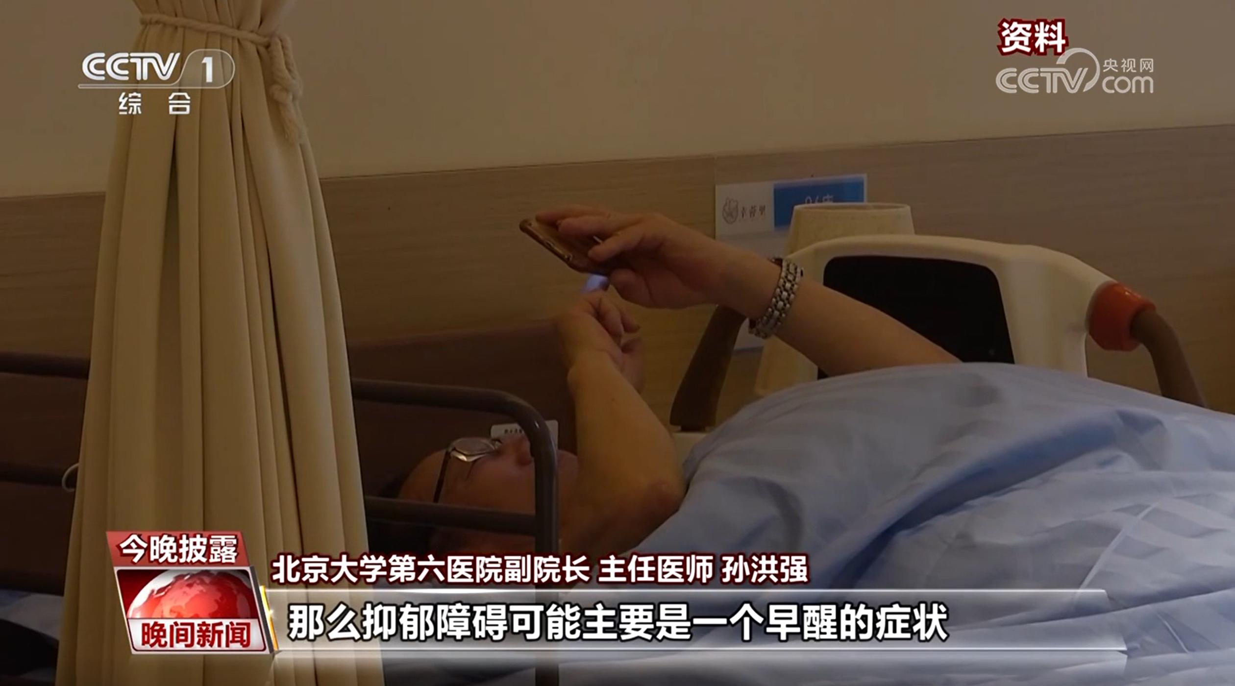 北京大学第六医院副院长 主任医师 孙洪强:有失眠的比没有失眠的人,得抑郁障碍的可能性要高两倍,两个是相互影响的,比如说焦虑障碍有入睡困难,抑郁障碍可能主要是一个早醒的症状,失眠的时间越长,发生焦虑和抑郁的比例就会越高。