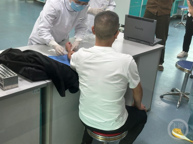 2024年10月9日,马小昂在宝鸡市中心血站做血型检测。上游新闻记者 贾晨 摄