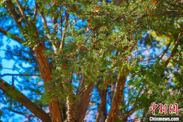 10月25日,吉林和龙,长白山发现的树龄超千年的东北红豆杉。商贵杰 摄