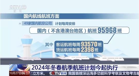 新航季将持续至2025年3月29日,共计154天,共有194家国内外航空公司计划每周安排客货运航班11.8万班,比去年同期增长1.2%。
