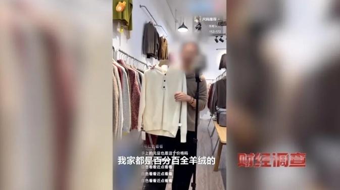 在绒钥服装店,负责人刘经理告诉记者,她售卖的这些羊绒衫虽然标称100%山羊绒,但其实大都是羊绒、羊毛混纺。刘经理其实因为虚标羊绒含量、成分,刚被处罚过,但她完全不在乎,继续售假。