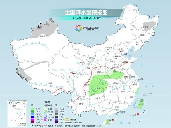 22日,黑龙江中东部、新疆北部、西藏西部、陕西中南部、河南西北部等地部分地区有小雪或雨夹雪,其中,新疆北疆北部和伊犁河谷、西藏西部等地部分地区有中到大雪,局地暴雪。陕西南部、河南中东部和南部、安徽西北部、湖北西部、四川东部、重庆、贵州北部、台湾岛、海南岛北部等地部分地区有小雨。