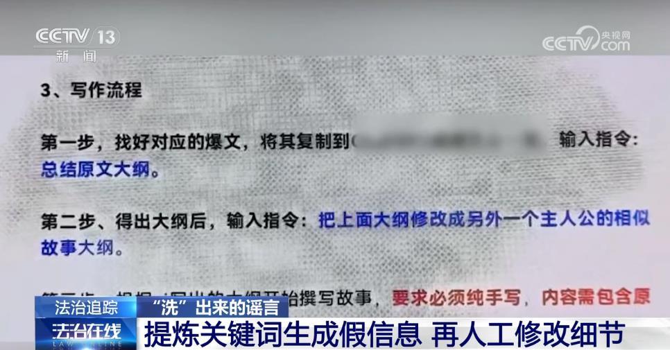 不仅原始网络文章不去核实真伪,该公司还利用AI技术把未经核实的信息直接转到软件上,通过AI提炼文章的核心内容,将时间、人物、地点等信息作为关键词再提问给AI,由AI生成一篇核心意思几乎一样、但具体内容又完全不同的虚假信息,最后再由人工夸大部分细节,增加能引起观众情绪的内容,一篇能够煽动观众情绪的虚假文章就出现了。