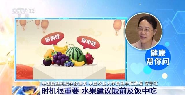 中国食品科技学会理事 中国农业大学食品学院教授 范志红:如果饭后去吃水果,已经吃得非常饱了,再加很多水果,就是额外增加身体的负担。我这里特别提倡大家饭前吃或者饭中吃。