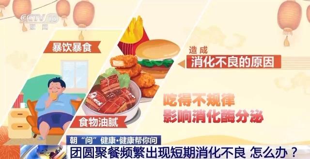 医生提示,节日期间,聚餐聚会多,容易出现短期消化不良。
