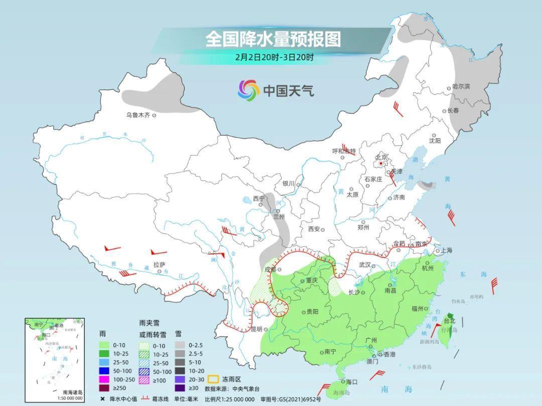 今天(2月2日),南方继续大范围阴雨,并且阴雨区域有所南落。由于光照减少,华南等地出现显著降温,降幅普遍在4℃至12℃。另外,北方冷空气继续东移南下,山西、内蒙古等地也出现明显降温。而在南北两片降温区之间,河北、河南、湖北等地气温回升,形成夹心状的升降温分布。