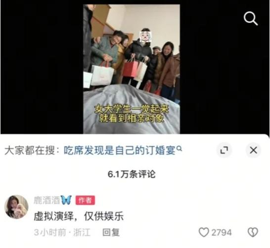 2月1日下午,一则“女生一觉醒来相亲对象已站床边”的视频冲上多平台热搜,且位居高位,但不少网友纷纷质疑这条视频涉嫌摆拍,因为“没人脑袋上长摄像头”“如果是真的,愤怒生气都来不及,怎么会第一时间录像”……