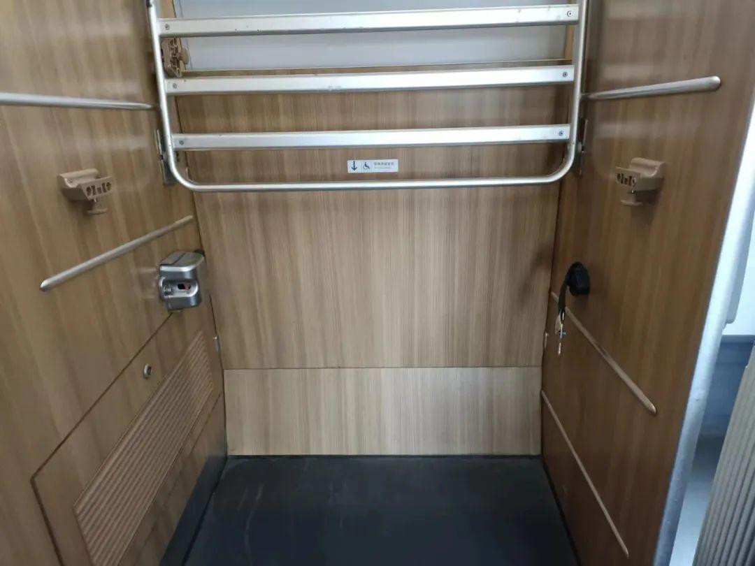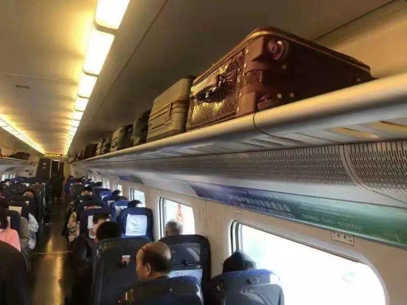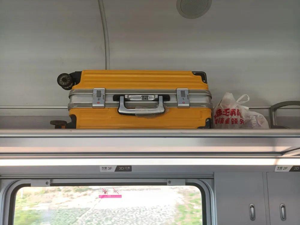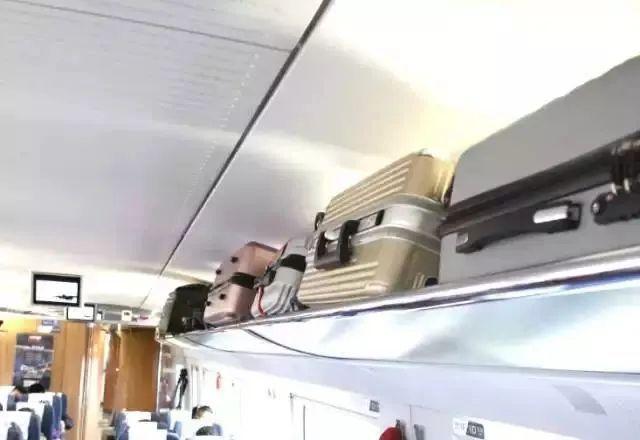 行李箱摆放时不能超过行李架边缘,应选择顺行李架方向摆放。