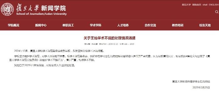通报指出,学校坚决维护学术规范,对学术违规绝不姑息。校学术规范委员会、新闻传播学博士后流动站按规定和程序进行了严肃调查,认为举报情况属实,被举报的4篇论文均出现了《复旦大学学术规范实施条例》规定的“学术不端行为”,情节严重,构成学术不端。