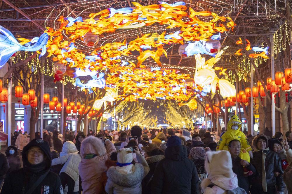 1月23日,游客在哈尔滨市中央大街游玩。新华社记者 谢剑飞 摄