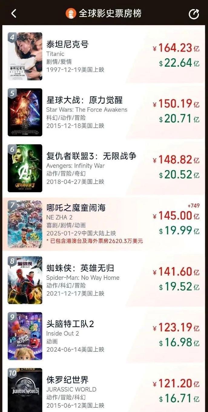 全球动画电影票房榜冠军
