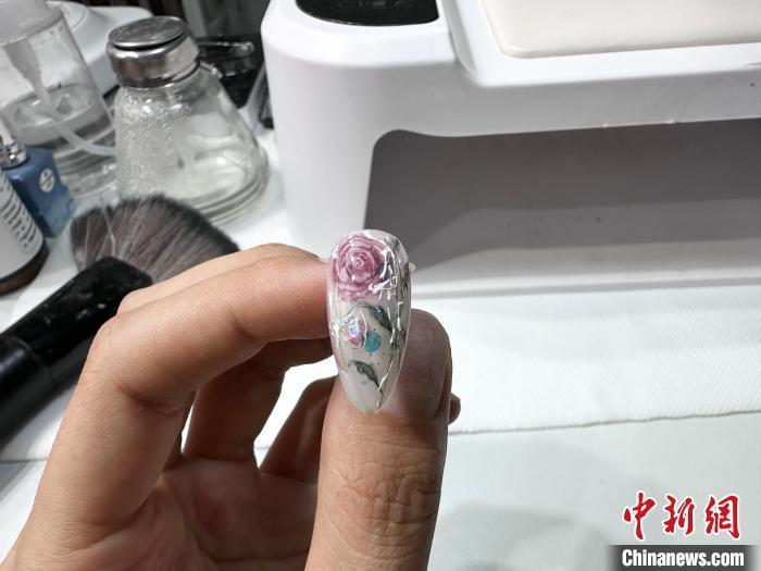 搭档在田田帮助下绘制的玫瑰花美甲。(受访者供图)