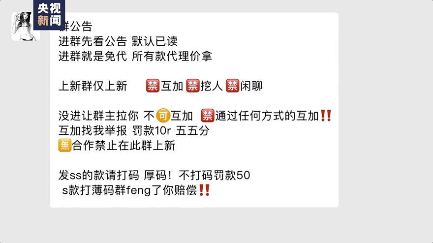 每个代理都会根据需要,建立数量不等、级别不同的聊天群,例如QQ群、微信群等。这些群普遍都有严格的群规,群成员被禁止私自交易,有的群还将所有成员禁言,有的甚至还有退群监控。