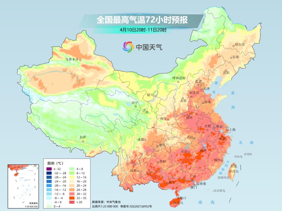 未来三天(4月9日至11日),中东部大部仍将保持着波动回暖的态势,气温较常年同期明显偏高。其中,东北大部地区的最高气温将逐步升至20℃以上。像哈尔滨,周五时,最高气温将稳步升至21℃,刷新今年来新高。