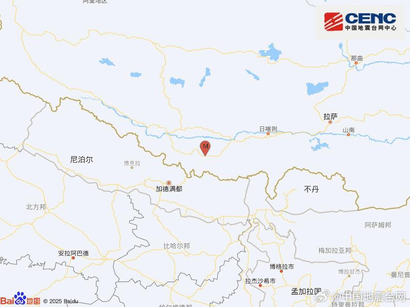 中国地震台网正式测定:4月10日13时12分在西藏日喀则市定日县(北纬28.67度,东经86.62度)发生3.1级地震,震源深度10千米。