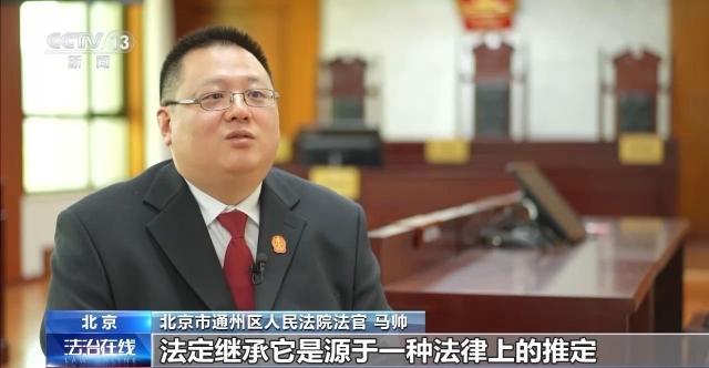 北京市通州区人民法院法官 马帅:法定继承源于一种法律上的推定,在没有遗嘱继承的情况下,无法知道逝者对于自己遗产处置的真实意图,我们从法律上去推断死者处理遗产的方式,肯定是分配给跟自己最亲近的人。