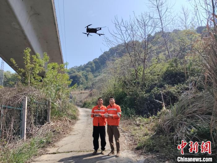图为南铁南昌高铁基础设施段的工作人员操纵无人机在沪昆高铁沿线开展防洪巡检。张晖 摄