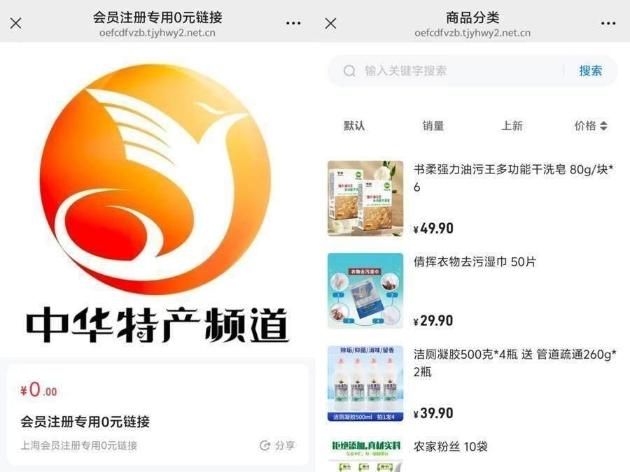 名叫“ⅩⅩ优选”的杂货店铁将军把门,玻璃门上贴着“取货时间8:00—11:00,14:00—16:00”的提示。向内张望,挨着门的是两张办公桌,桌上A4纸上印有二维码;靠内侧是两个货架,摆着一些类似奶粉罐的物品。记者隔着玻璃门扫码,跳转到一家名叫“中华特产频道”的线上店铺,主要销售日用品和食品。但商品只有名称、规格和价格,没有详情,很难从页面介绍判断商品是否值得购买。而且,该店铺所在平台无法查证,不是常见的电商平台。