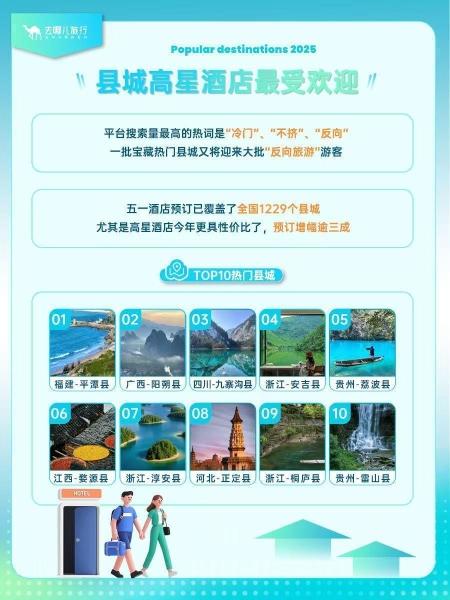 去哪儿大数据显示,“五一”假期出行和入住的酒店及景区,搜索量最高的热词是“冷门”“不挤”“反向”。一批宝藏热门县城又将迎来一大批“反向旅游”游客。