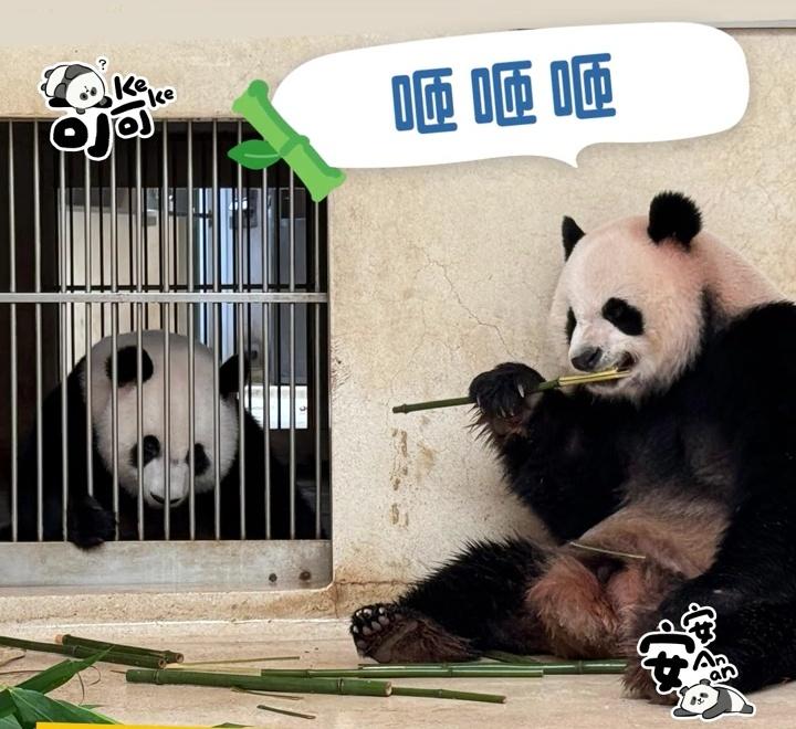 据悉,园方安排它们在相连的房间,隔着闸门进行初次接触,通过这种保护式互动体验,让两只大熊猫可以通过气味、声音及视觉互相认识,帮助慢慢建立舒适感和联系。