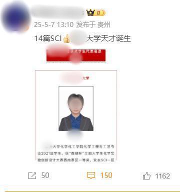 5月7日,一篇获奖文章引发关注,其中介绍,来自重庆大学的大四学生刘某乔,发表十余篇SCI论文以及获得多项国家发明专利授权。该文章在社交平台受到关注。