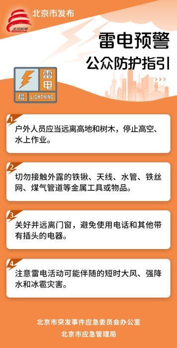 北京市应急办发布大风、冰雹、雷电预警公众防护指引,请广大市民朋友注意安全防范。