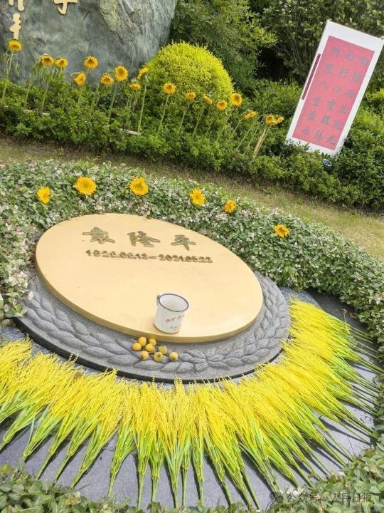 在袁隆平墓地周围,还插着数十支向日葵。“袁院士生前是一个很阳光、很快乐的人,常常说,做人要向阳而生。”