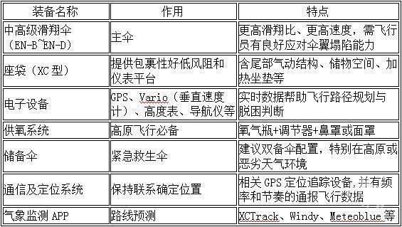 随着滑翔伞运动发展,中高级飞行装备更强调续航性能、抗风能力、飞行效率和安全冗余。典型配置如下: