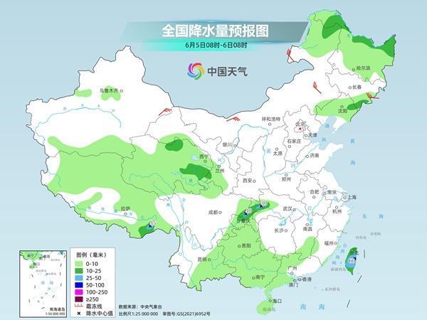 中央气象台预计,今天,黑龙江西北部、西藏东南部、青海南部、云南东南部、台湾岛等地部分地区有中到大雨,其中,台湾岛中南部等地部分地区有暴雨或大暴雨。