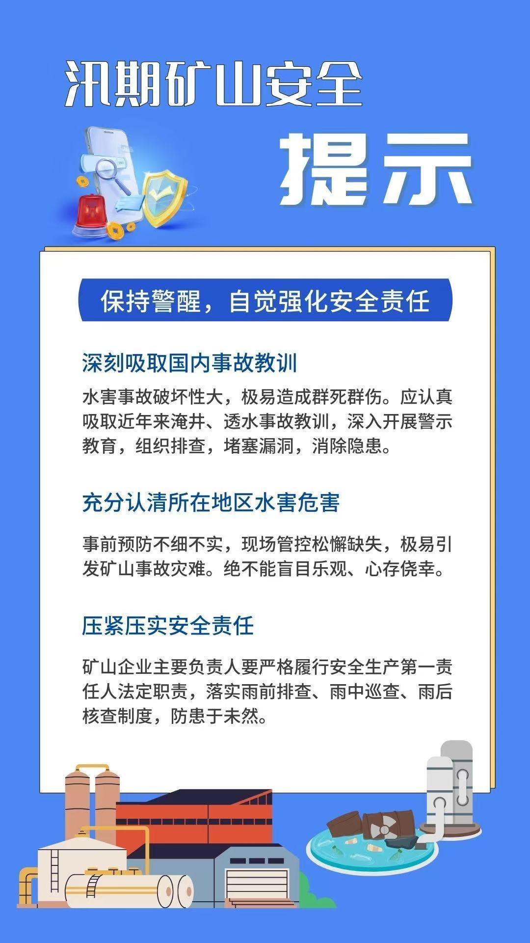入夏以后,我国大部分地区进入汛期,汛期降水集中,降雨将强度更大、历时更长,洪涝灾害事件随时可能发生。复杂天气为矿山生产带来不安全因素。因此,应着力防范化解汛期水害风险隐患,坚决防止因暴雨洪水等自然灾害引发矿山事故。如何做好汛期矿山安全工作?这份矿山安全提示请查收。