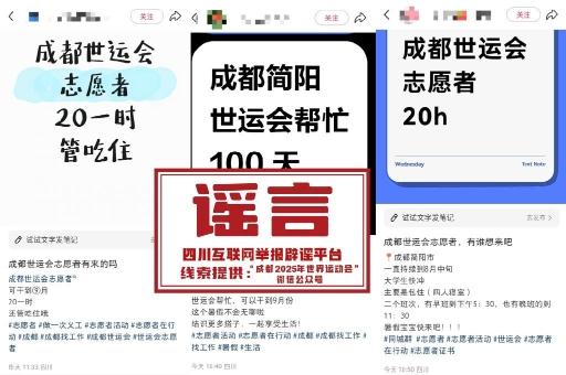近日,个别网民在社交平台借“成都世运会志愿者”名义发布兼职招聘广告,内容包括工作内容、工作时间、时薪、住宿等,引发网民关注和讨论。