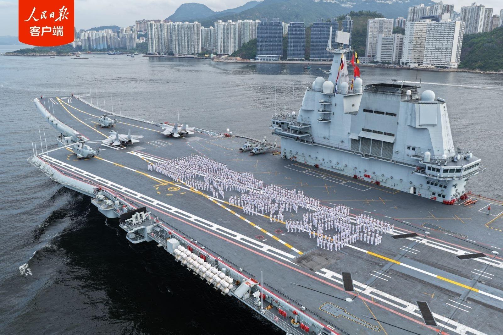 在香港回归祖国28周年之际,由中国人民解放军海军航空母舰山东舰,导弹驱逐舰延安舰、湛江舰及导弹护卫舰运城舰组成的航母编队,携多型舰载战斗机、直升机和陆战队员,于3日上午抵达香港特别行政区,开启为期5天的访问活动。香港特别行政区政府在昂船洲军营为舰艇编队访港举行隆重欢迎仪式。