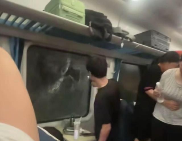 22时04分许,3号车厢一名男性旅客擅自取下消防安全锤试图砸车窗,列车工作人员上前劝阻未果,导致一块车窗玻璃被砸破。为防止旅客跳窗发生意外,一名列车工作人员立即上前张开双臂、拦在窗前,乘警及其他列车工作人员共同做好现场隔离防护。23时11分许,列车空调恢复运行。列车停靠金华站后,铁路公安对砸窗男子进行批评教育,车辆工作人员对破损车窗进行了修复。