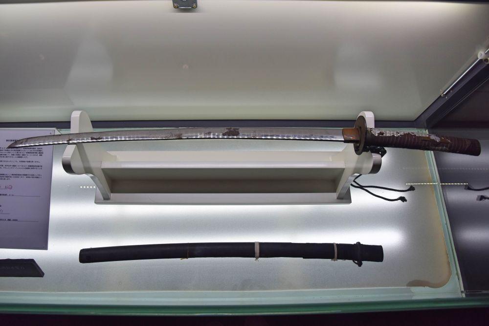 侵华日军第七三一部队罪证陈列馆展出的一把奖励解剖技师的军刀。新华社记者 杨思琪 摄
