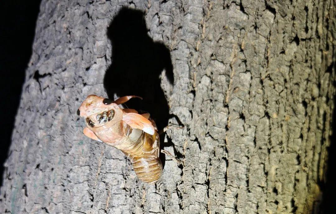 知了猴留在树上的蝉蜕。国是直通车 杨懿茹 供图